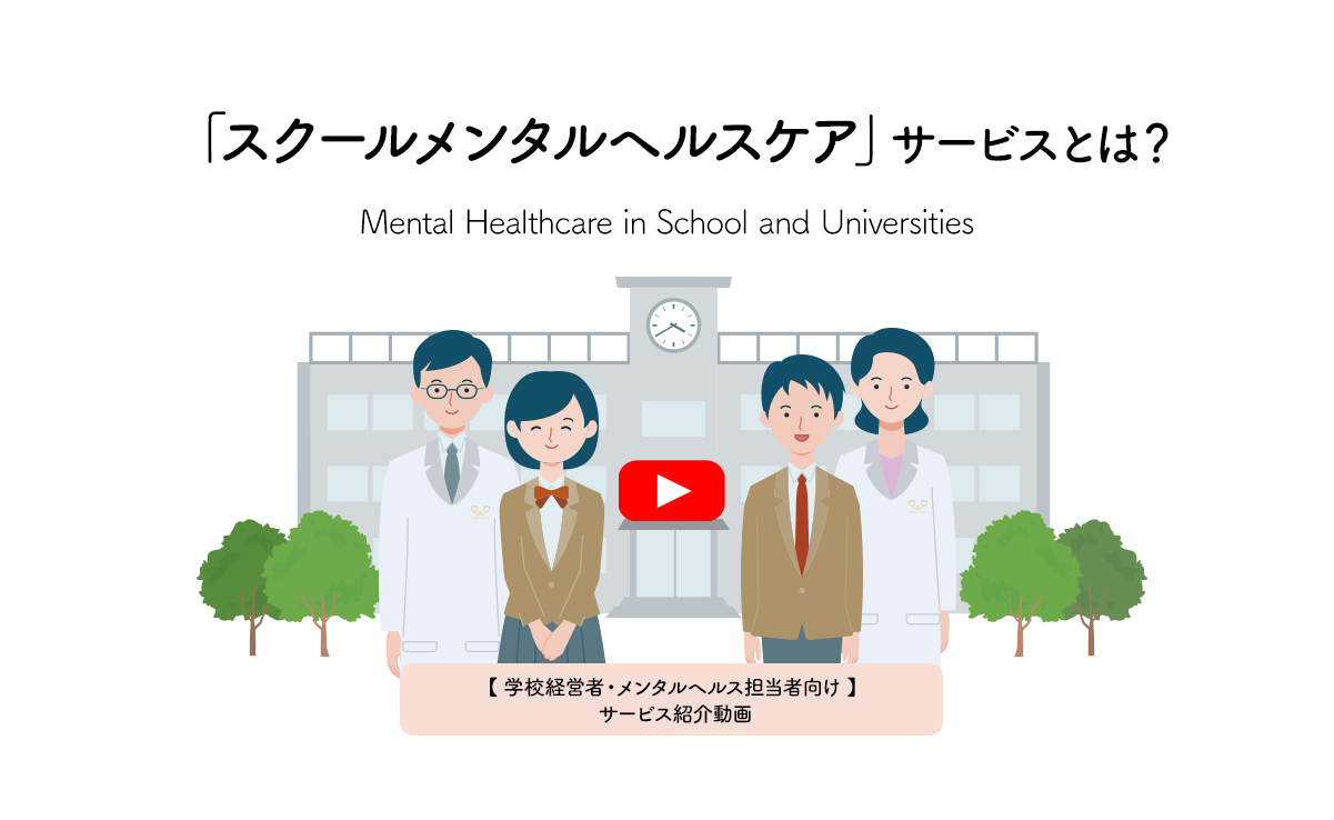 ICT を活用した、学校向けのオンライン精神医療相談サービスです。スマートフォンやタブレットからこころの専門家(医師・心理士)に悩みや不安を相談できます。