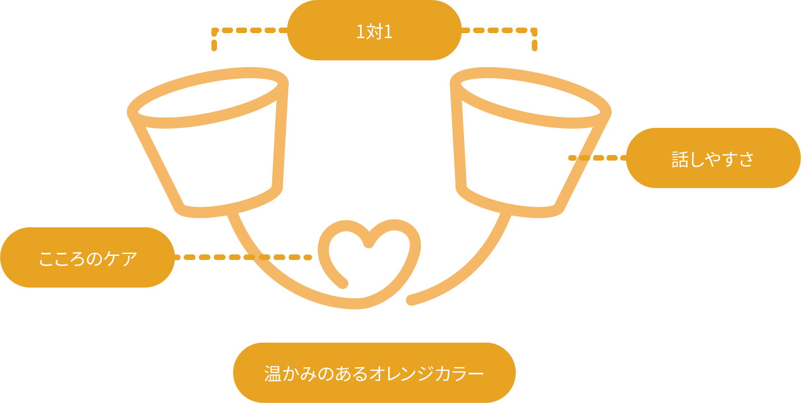 「こころの悩みや不安をいつでも気軽に相談してほしい」 そんな私たちの想いが込められた ⽷電話をモチーフにしたロゴマークです。 こころの専⾨家スタッフ プライバシーの確保 顔を⾒ながらの相談 相談時間は45分 スマホで気軽に 自分のお部屋などリラックスできる場所でゆっくりと 安⼼して話せる環境づくりにこだわります。